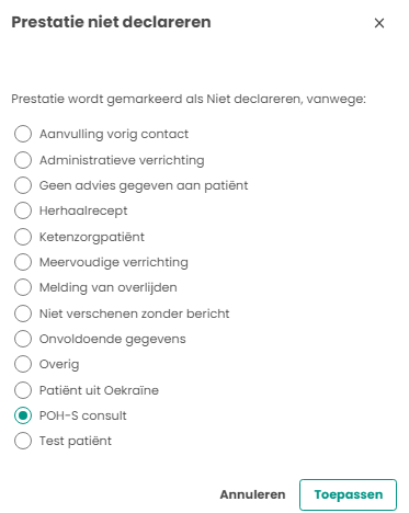 Stappenplan verplaatsen van prestaties naar Niet Declareren.