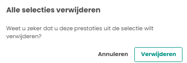 • Kies voor ‘Verwijderen’ bij de vraag ‘Alle selecties verwijderen’. De selectie wordt dan verwijderd. Het groene vakje Selectie komt op 0 te staan.