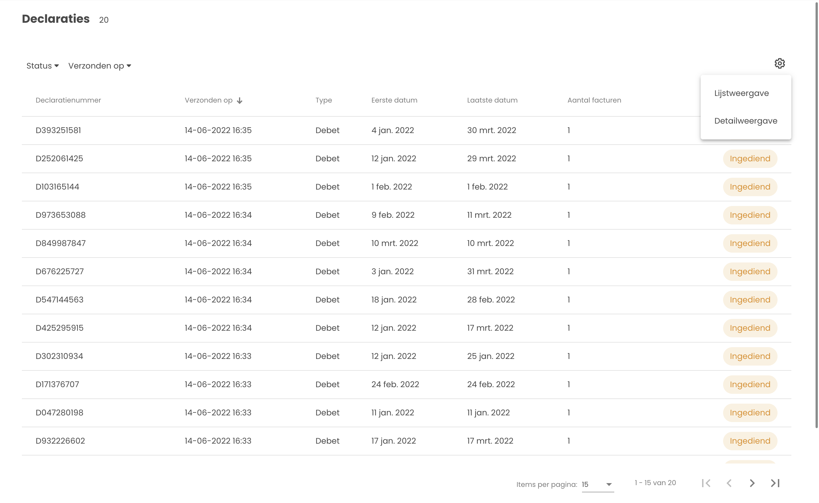 De weergave in het declaratieoverzicht kan op twee manieren worden gewijzigd.