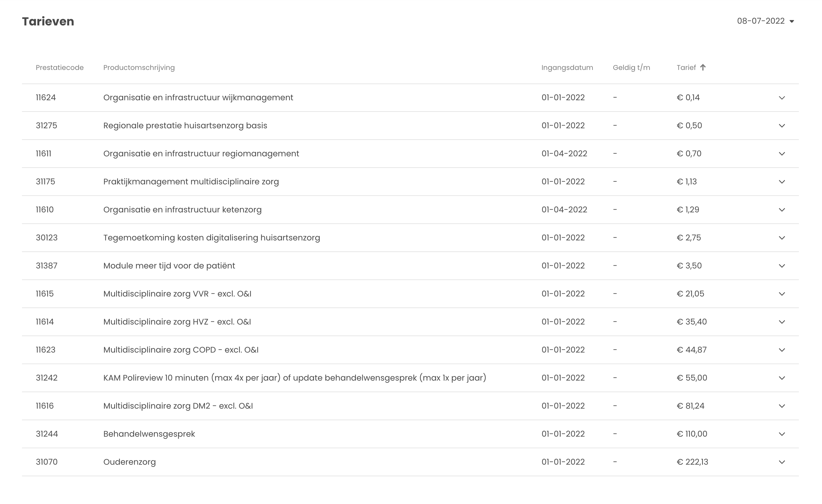 In het overzicht hieronder staat het van laag naar hoog op tarief.